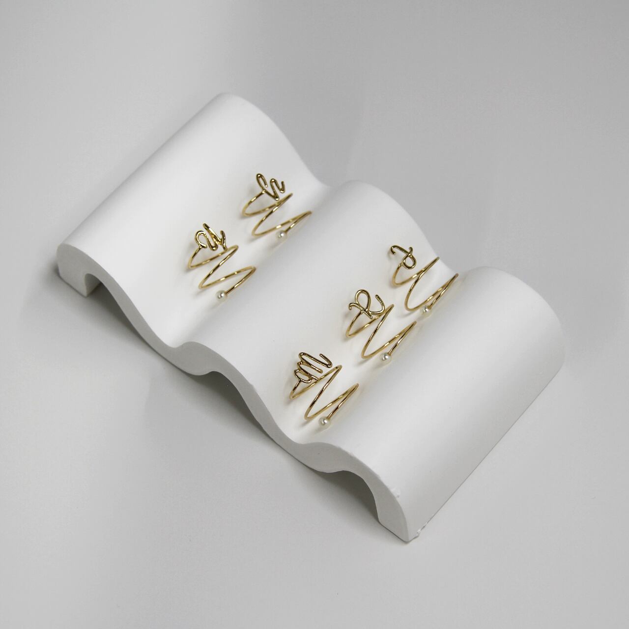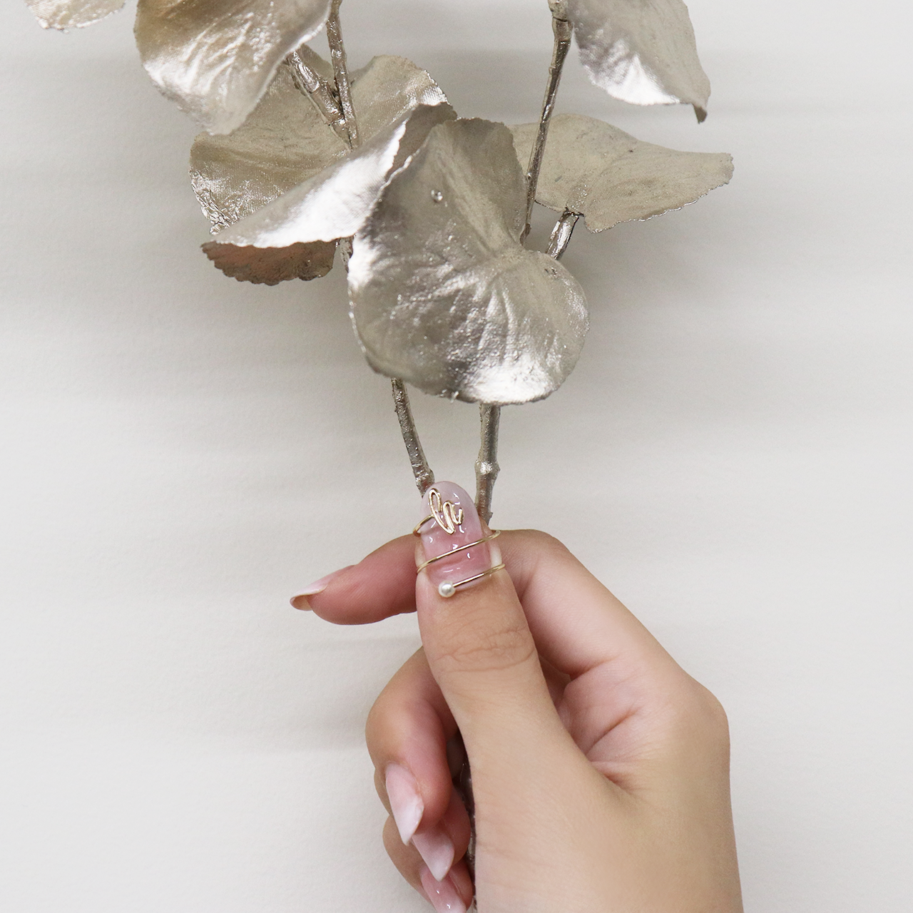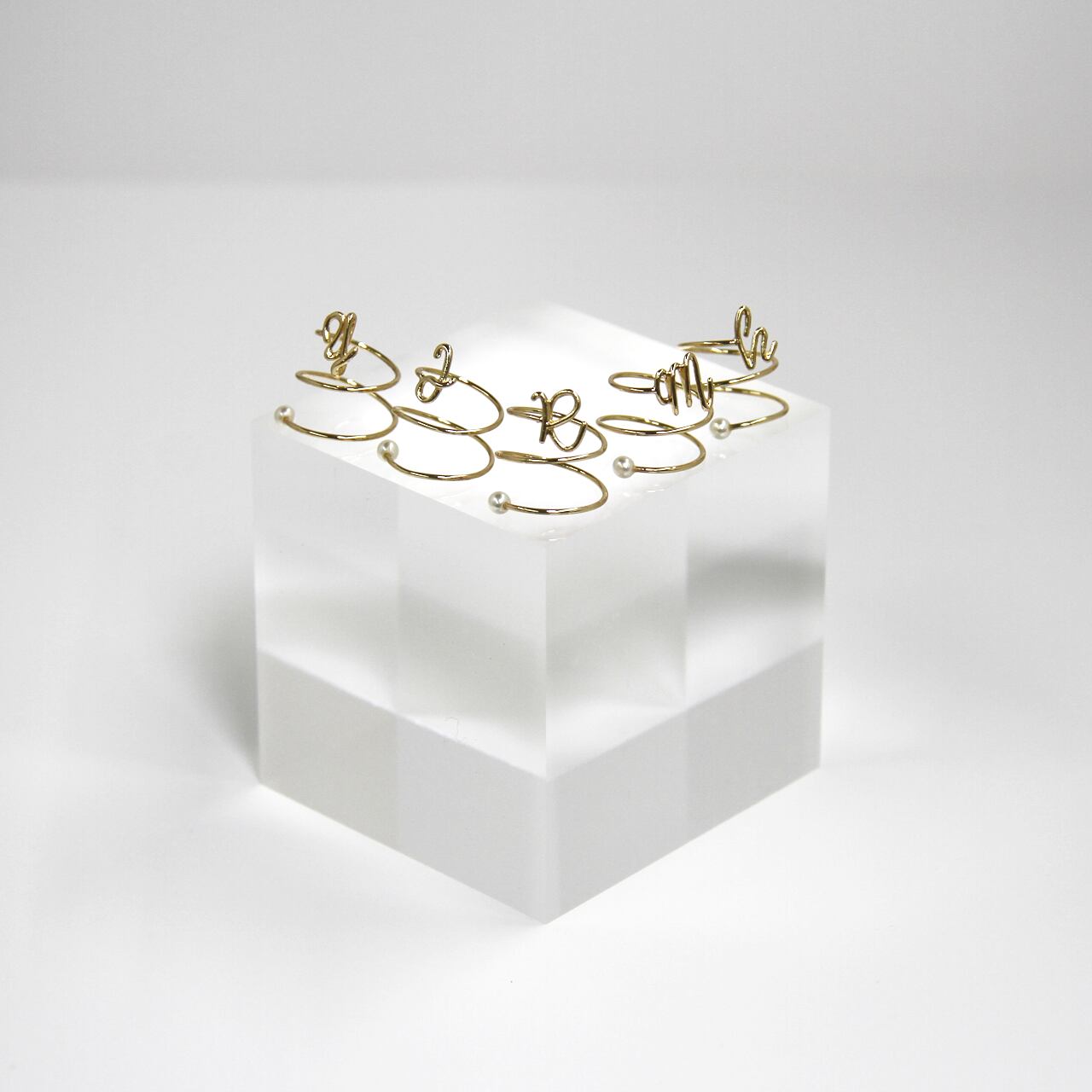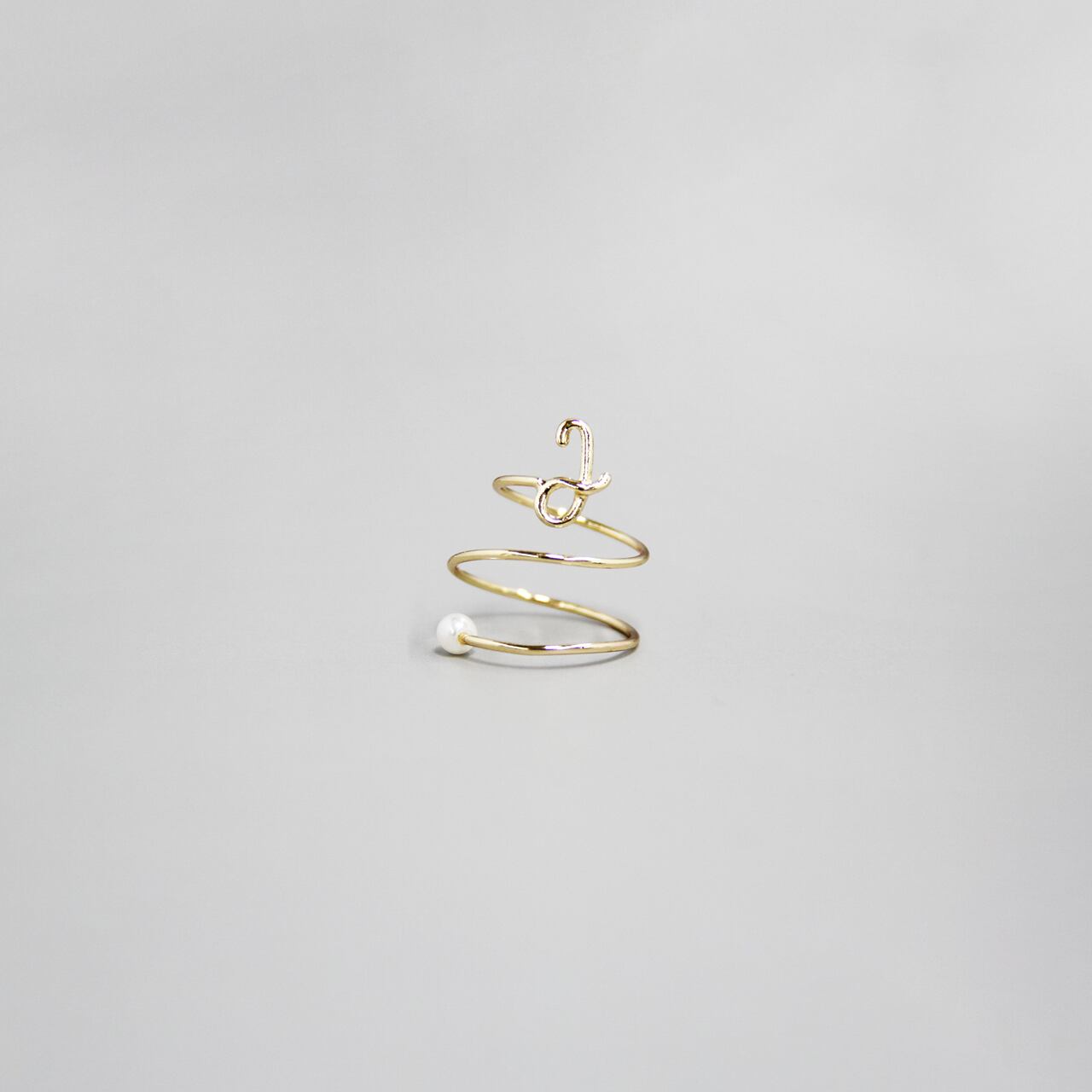 トップにくる立体のイニシャルが目を引くリング。